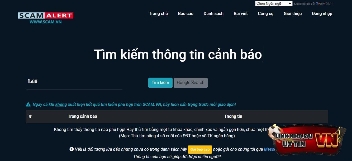 Để có thể kiểm tra thông tin của nhà cái, cổng game lừa đảo, anh em cũng có thể tham khảo tiện ích Website: Scam.vn. Đây là trang tố cáo những website lừa đảo, số điện thoại lừa đảo, thông tin lừa đảo Online. Nếu Fb88 có hành vi lừa đảo trong cung cấp dịch vụ, bạn có thể tìm kiếm tại đây.