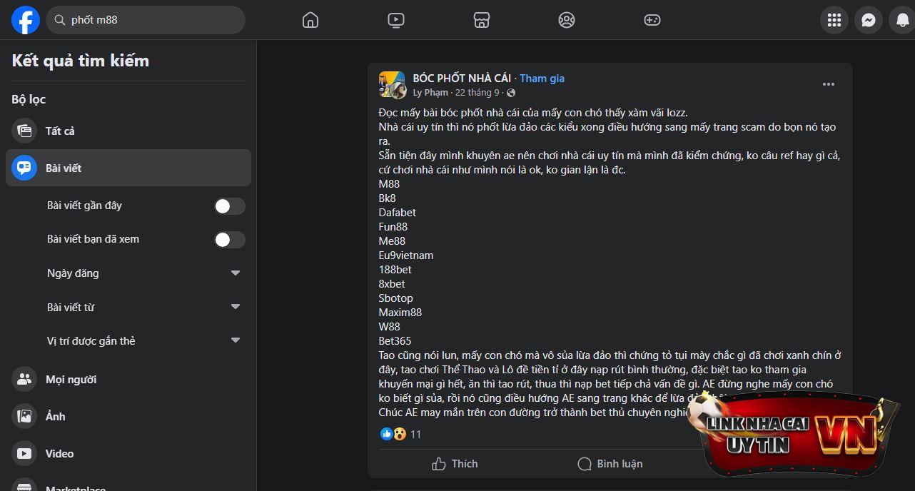 Hiện tại các trang mạng xã hội như Facebook đã quá thông dụng với người dùng Việt Nam. Các hội nhóm bóc phốt Nhà cái cũng có đăng thông tin các nhà cái lừa đảo, bịp người chơi, quỵt tiền,… Sử dụng từ khóa “Phốt M88” để tìm kiếm thông tin.