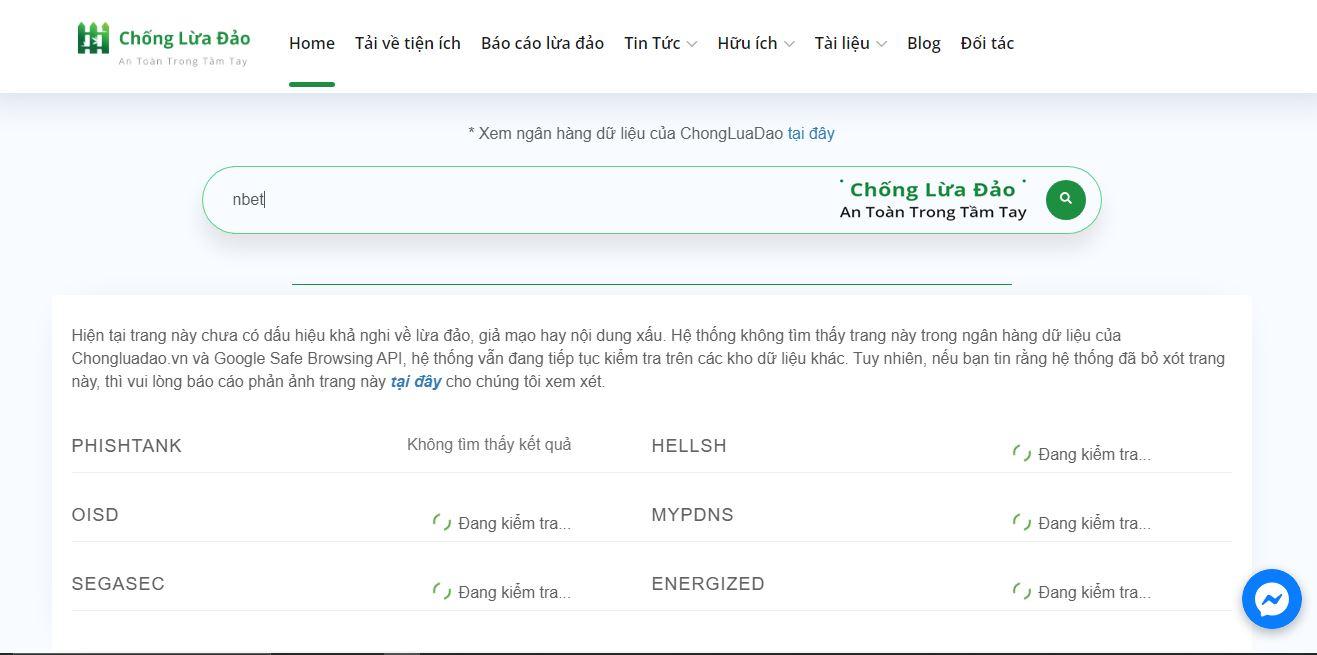 Kiểm tra thông tin Nhà cái Nbet trên chongluadao.vn