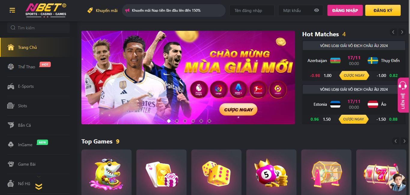 - Nbet có giao diện đẹp mắt, đa dạng sản phẩm cược. Ngoài cá cược thể thao còn có chơi lô đề (tỷ lệ 1 ăn 99), Bắn cá, nổ hũ.