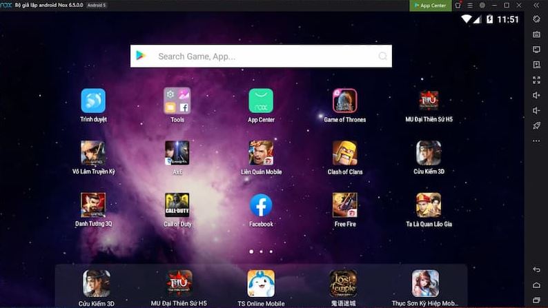 - Bước 3: Nhập tên game/ứng dụng vào ô tìm kiếm trên màn hình giả lập Nox Player để tìm và tải game về máy và chơi giống như thao tác trên điện thoại.
