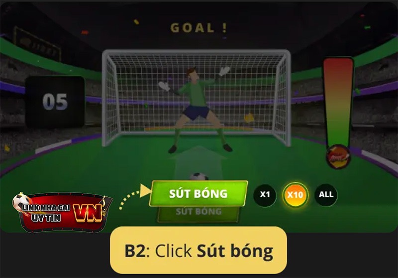 Bước 2: Chỉ cần click sút bóng và nhận thưởng